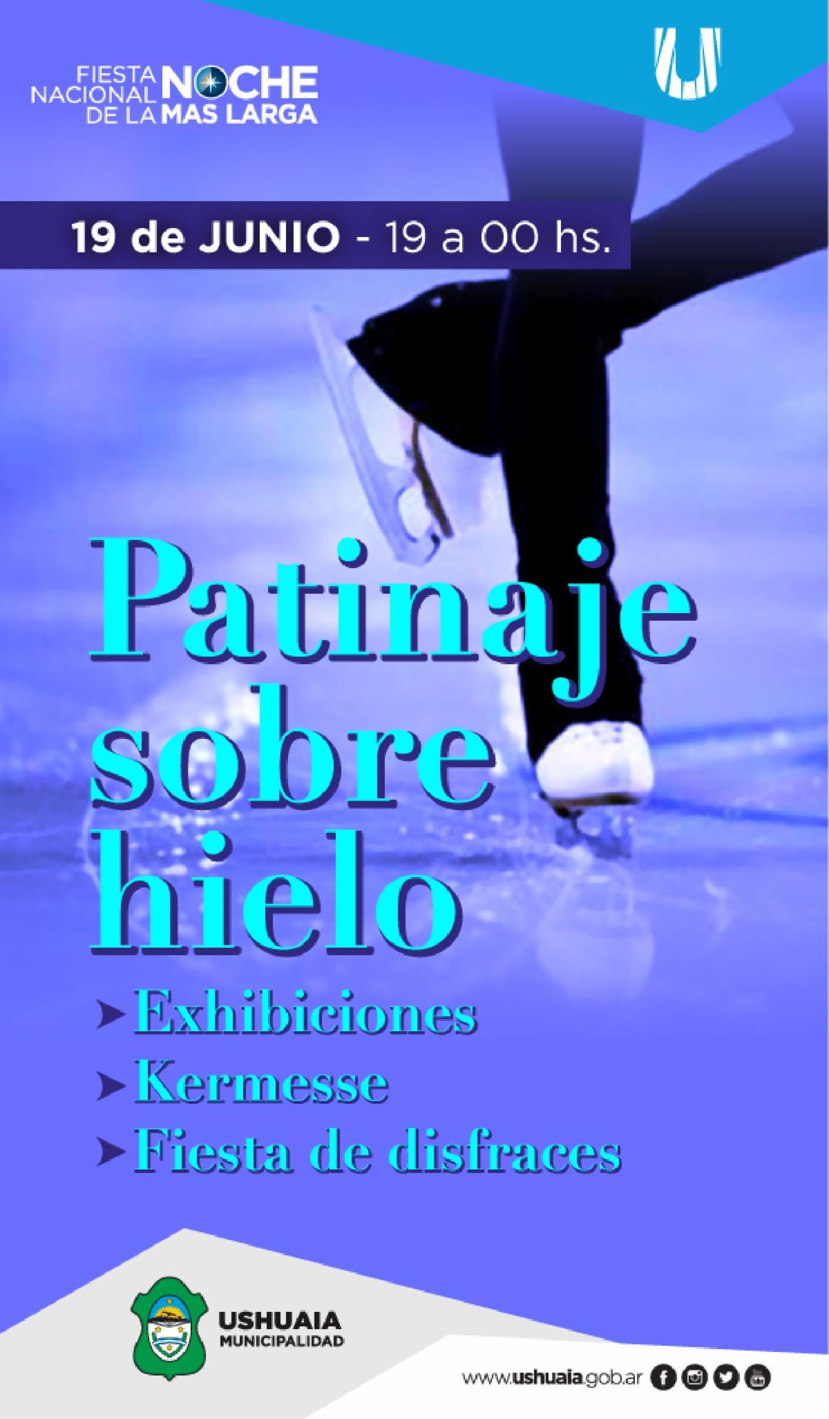 El domingo de 19 a 24hs se podrán realizar diversas actividades en la Pista de Patinaje Sobre Hielo Tachuela Oyarzún.Contará con la participación de Club Los Ñires, Club Andino Ushuaia y Escuela de Patín Nora Vega.