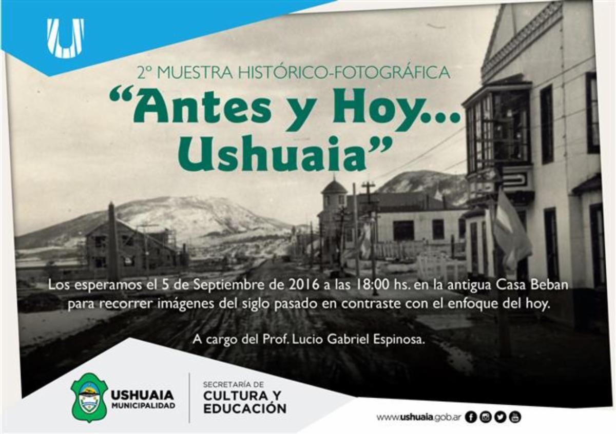 La Municipalidad de Ushuaia invita a toda la comunidad a participar de la inauguración de la muestra fotográfica “Antes y Hoy… Ushuaia” a llevarse a cabo este lunes 5 de septiembre a las 18 hs. en la Antigua Casa Beban.