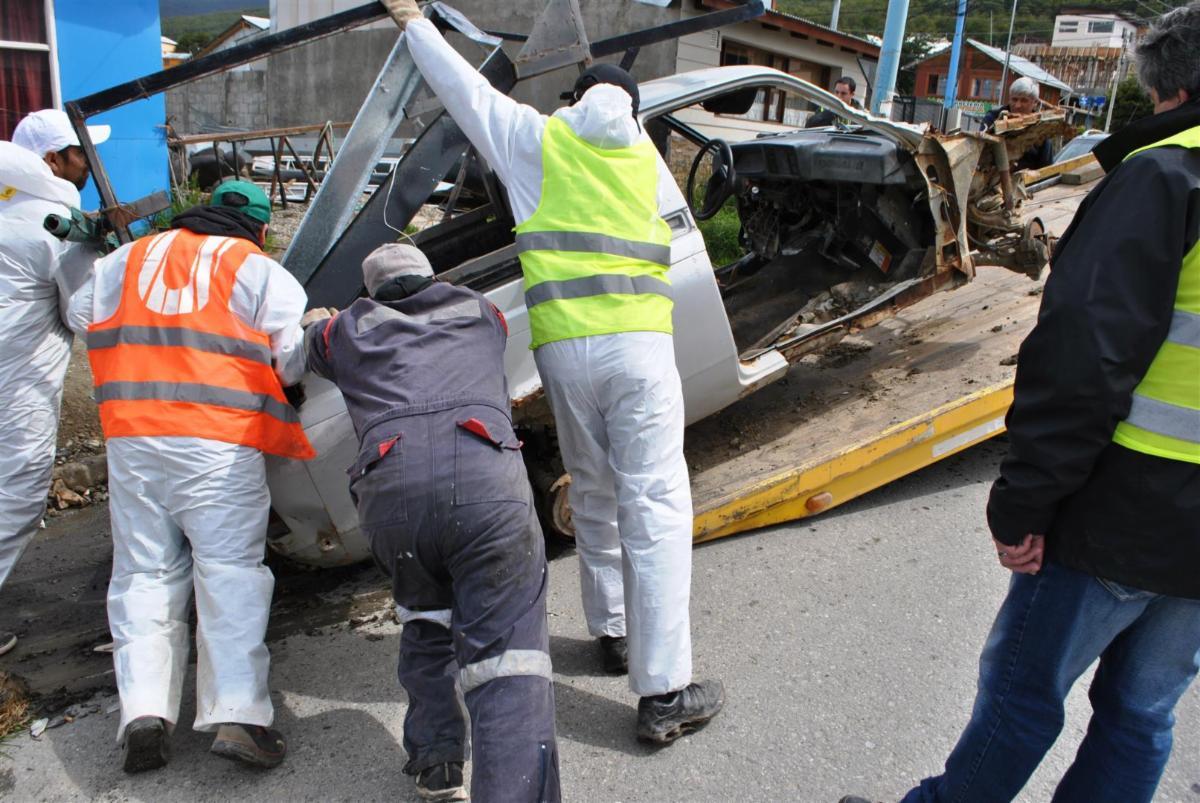 Aquellos restos de vehículos que pudieron ser levantados en calidad de chatarra fueron llevados al predio lindante al relleno sanitario.