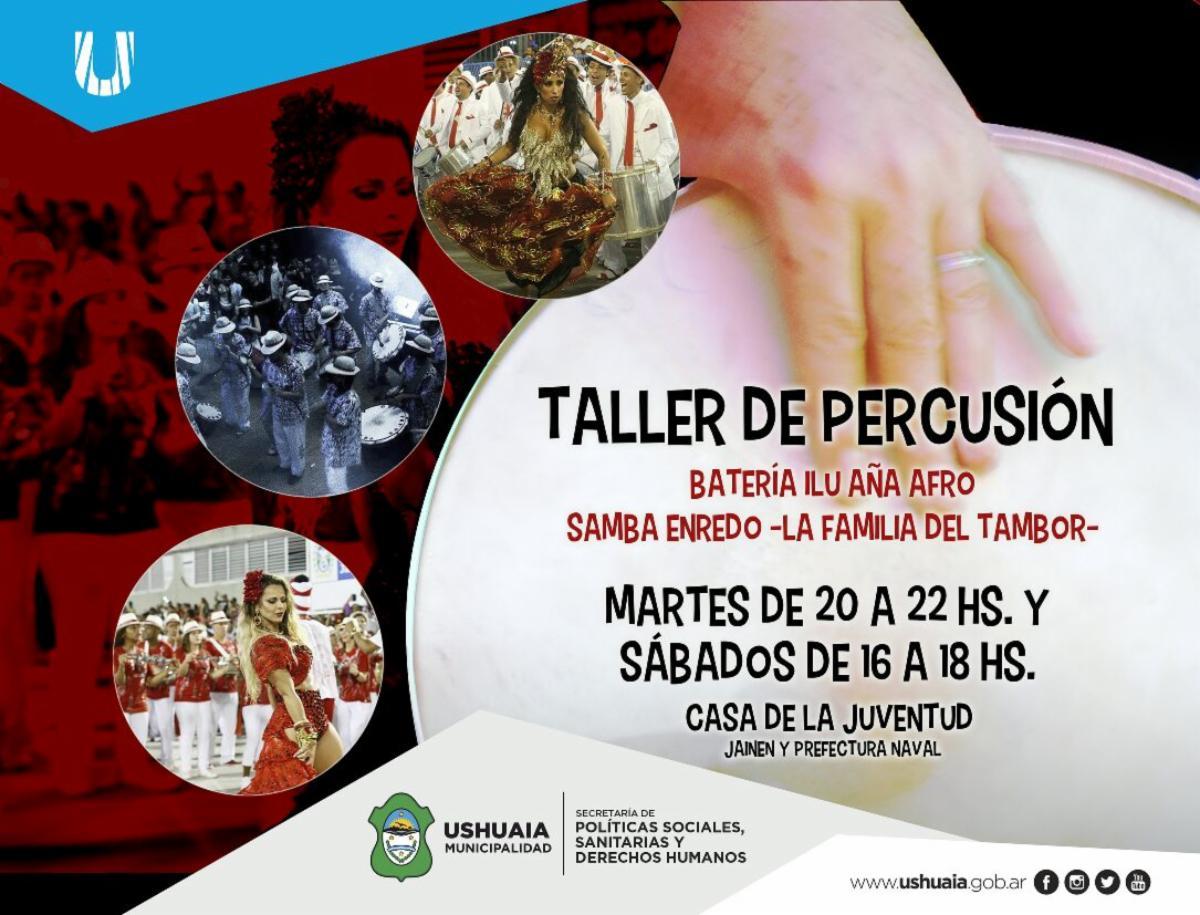Todos los martes y sábados se lleva a cabo el taller de percusión, de batería Ilu Aña Afro, Samba Enredo, denominado La Familia del Tambor.