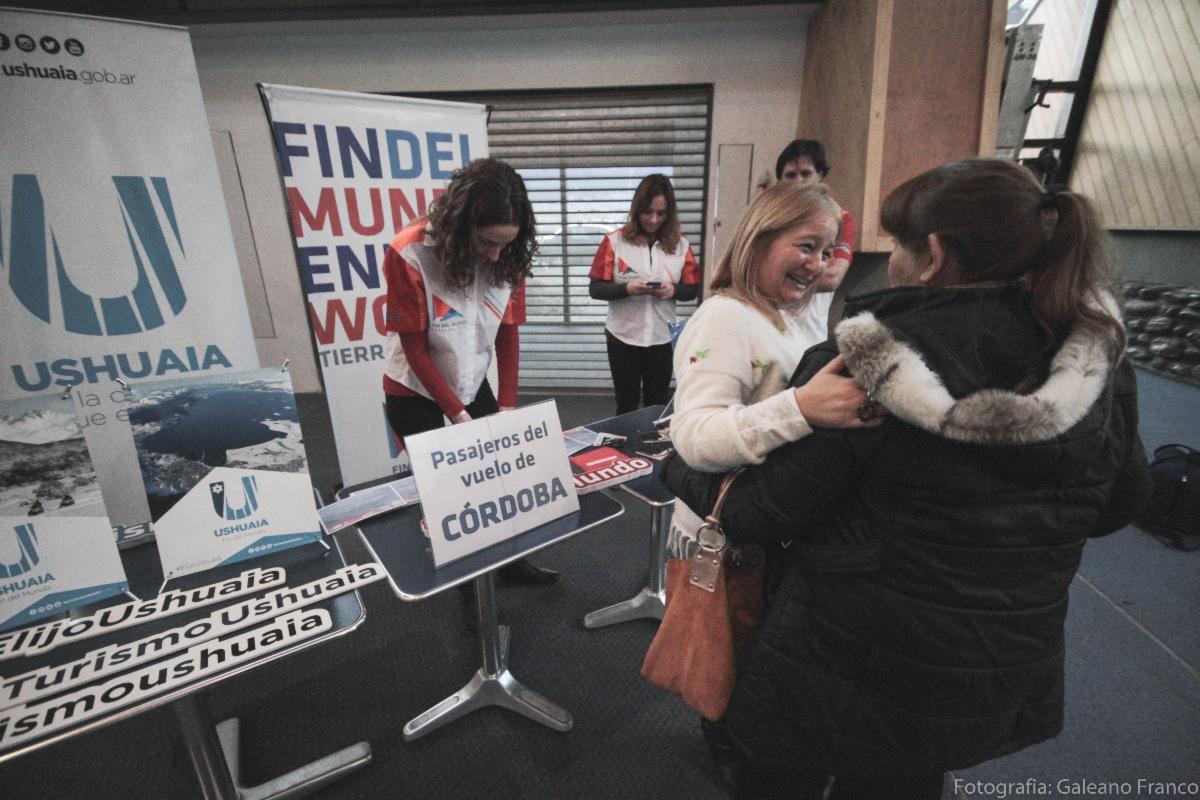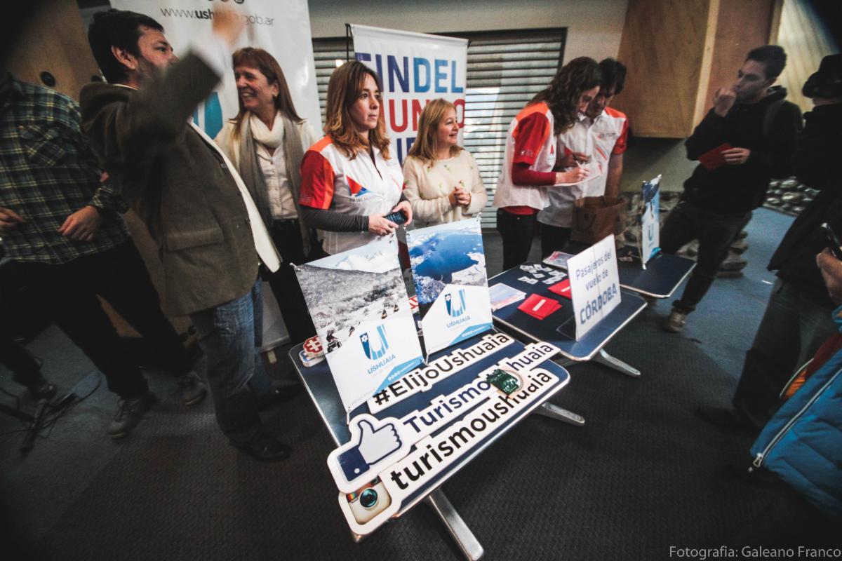 Tras la llegada del primer vuelo el pasado sábado la Secretaría de Turismo -en conjunto con el Instituto Fueguino de Turismo- organizó la recepción de los pasajeros con la presencia de la Banda Municipal, y un stand de ambas entidades donde se entregaron diplomas y se realizaron sorteos.