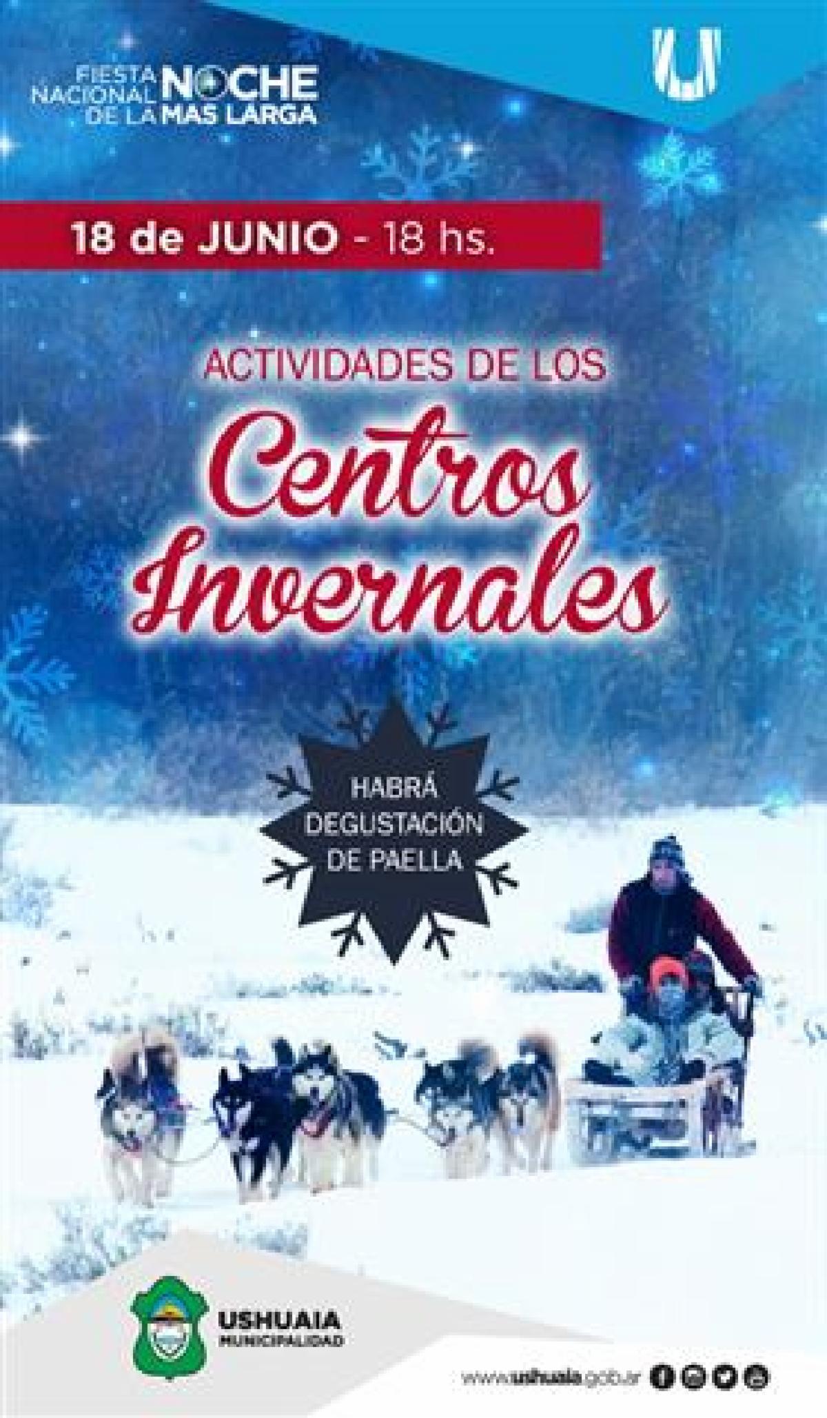 Ante el inminente inicio de la temporada invernal, la Municipalidad de Ushuaia, mediante la Secretaría de Turismo, trabaja en la promoción de los centros invernales. Ushuaia Blanca, Cerro Castor, Haruwen, Valle Hermoso, Siberianos de Fuego, tendrán su lugar en los festejos por la Noche Más Larga, sumado al Yámana Bar+patin y la Escuela de Ski Ushuaia. Los mismos van a tener un stand dentro del Bar Yámana, donde podrán compartir con los vecinos cuales son las alternativas deportivas, gastronómicas y recreativas que ofrecen cada uno. Por otro lado en la glorieta de la Casa Beban Gastronomía del Sur va a ofrecer a la comunidad degustación de paella, gracias a la colaboración de Gastronomía del Sur. Otras actividades También este sábado 18 el acceso a la Pista de Patinaje Tachuela Oyarzún tendrá entrada libe y gratuita, sumado a que el alquiler de los accesorios durante una hora no tendrá costo.