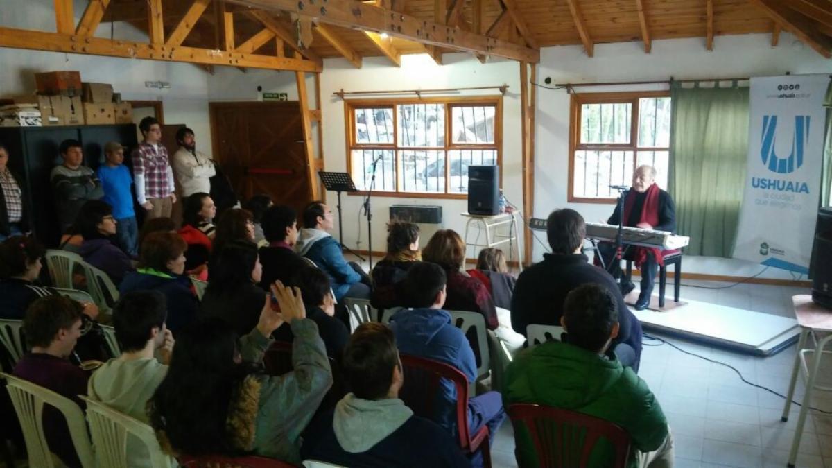 El concertista de piano, Miguel Ángel Estrella, se presentó en el barrio Kaupén de Ushuaia y compartió su arte con los vecinos del sector, quienes se acercaron al centro comunitario en la tarde del domingo.