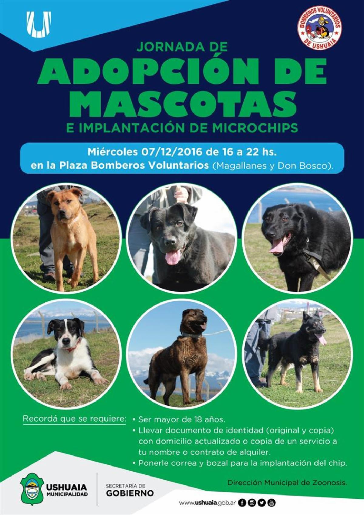 El Departamento de Zoonosis de la Municipalidad de Ushuaia, llevará a cabo la 5° Jornada de Adopción y Tenencia Responsable de Mascotas el próximo miércoles 7 en la Plaza de Bomberos Ushuaia.