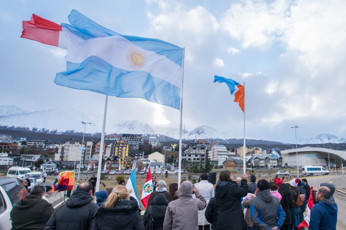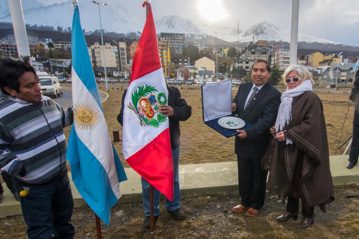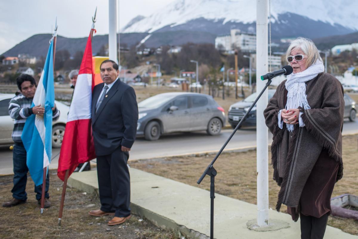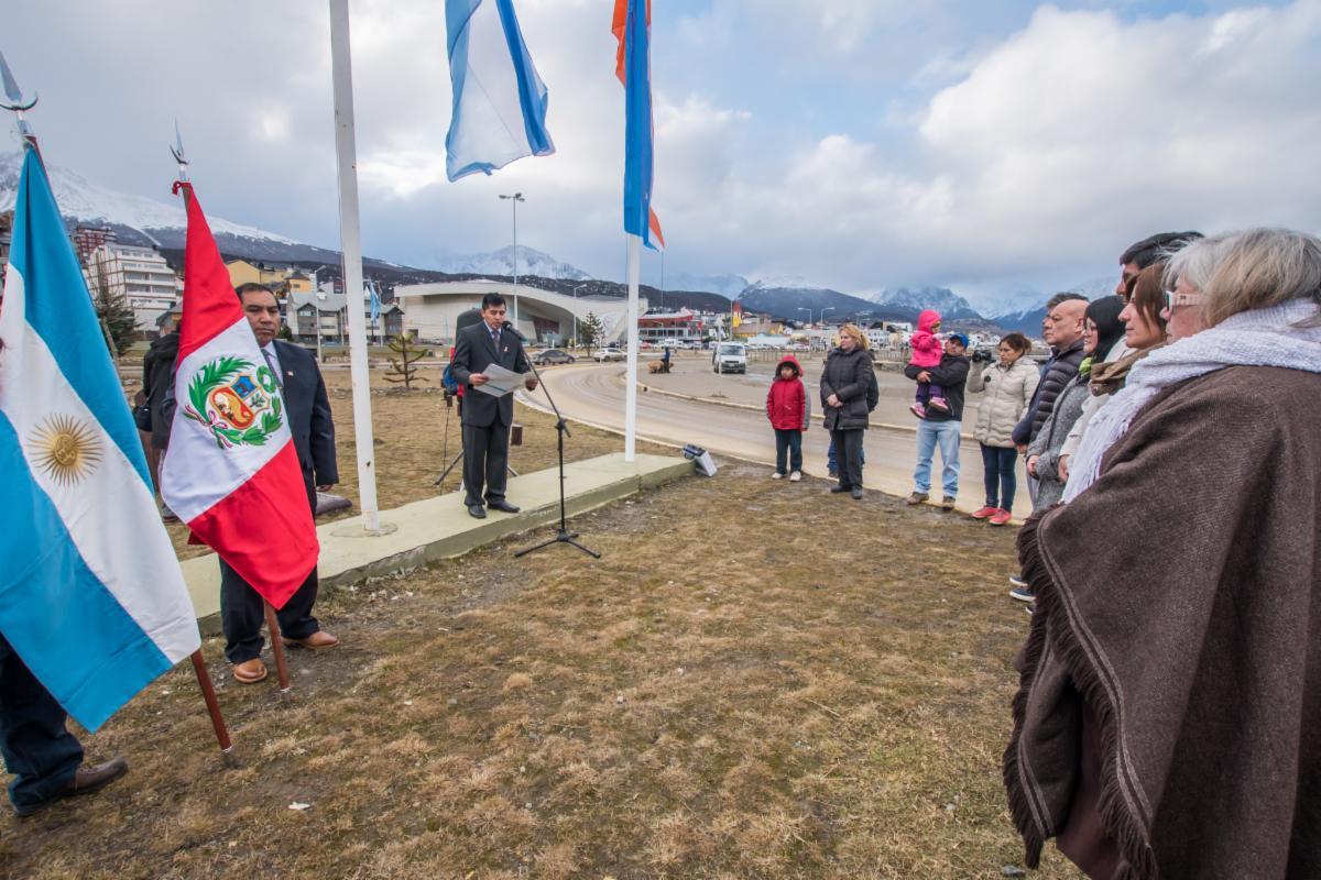 Se conmemoró el aniversario de la Independencia de la República de Perú en la plaza que lleva su nombre en la ciudad de Ushuaia.