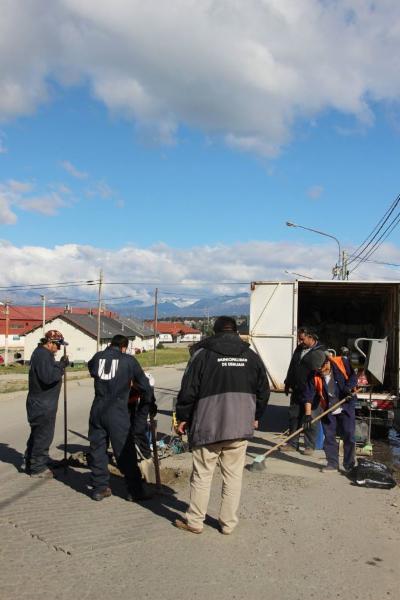 En el marco del plan de trabajo que se inició el 1 de marzo, personal de Servicios Públicos de la Municipalidad de Ushuaia y contratados, llevan adelante tareas de recuperación de la red vial de la ciudad. En la jornada de hoy repararon distintos sectores de las calles Fuegia Basket, Perón, Pontón Río Negro y Alfonsina Storni.