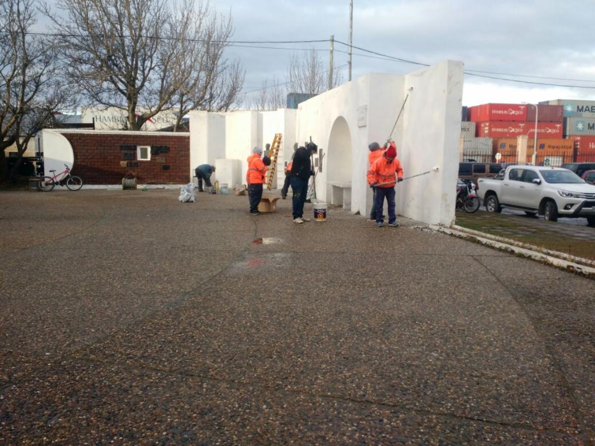 Trabajadores del área realizaron trabajos de pintura y recuperación de las placas e inscripciones conmemorativas en el lugar ubicado en Maipú y 25 de Mayo.