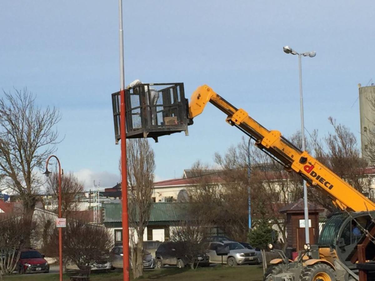 REPARARON Y ACONDICIONARON LAS LUMINARIAS DE LA PLAZA PIEDRABUENA