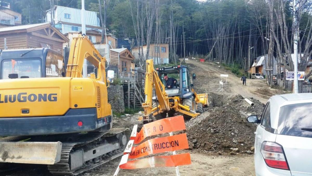 Continúan las obras en los macizos K y D de la ciudad de Ushuaia donde se construye una red cloacal que permitirá conectar a gran cantidad de vecinos, construir también una escalera en el barrio Obrero, la apertura de calles y un Salón de Usos Múltiples para uso del barrio.