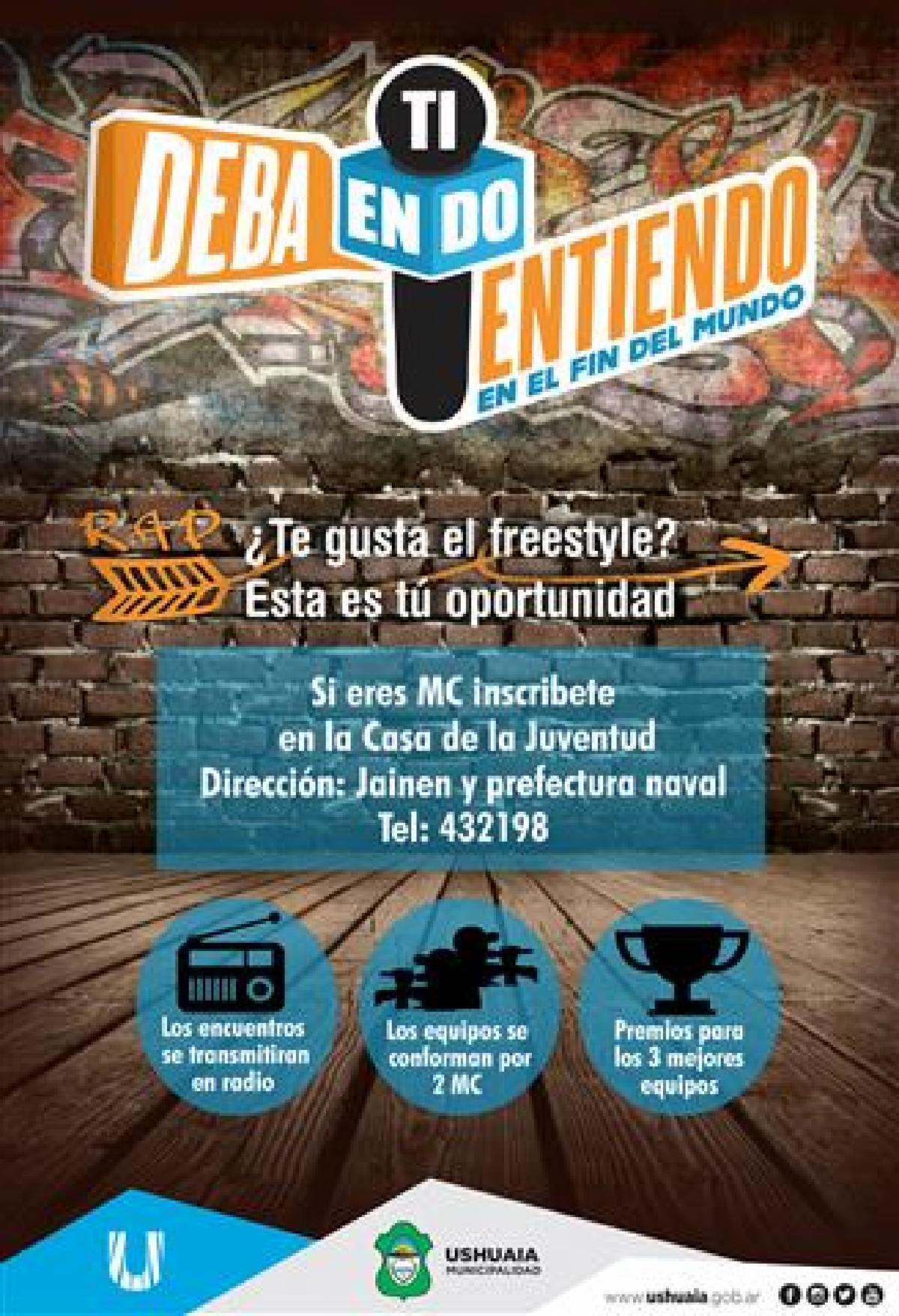 La Municipalidad de Ushuaia a través de la Casa de la Juventud invita a los jóvenes a participar del evento "Debatiendo Entiendo", destinado a quienes realizan freestyle rap.