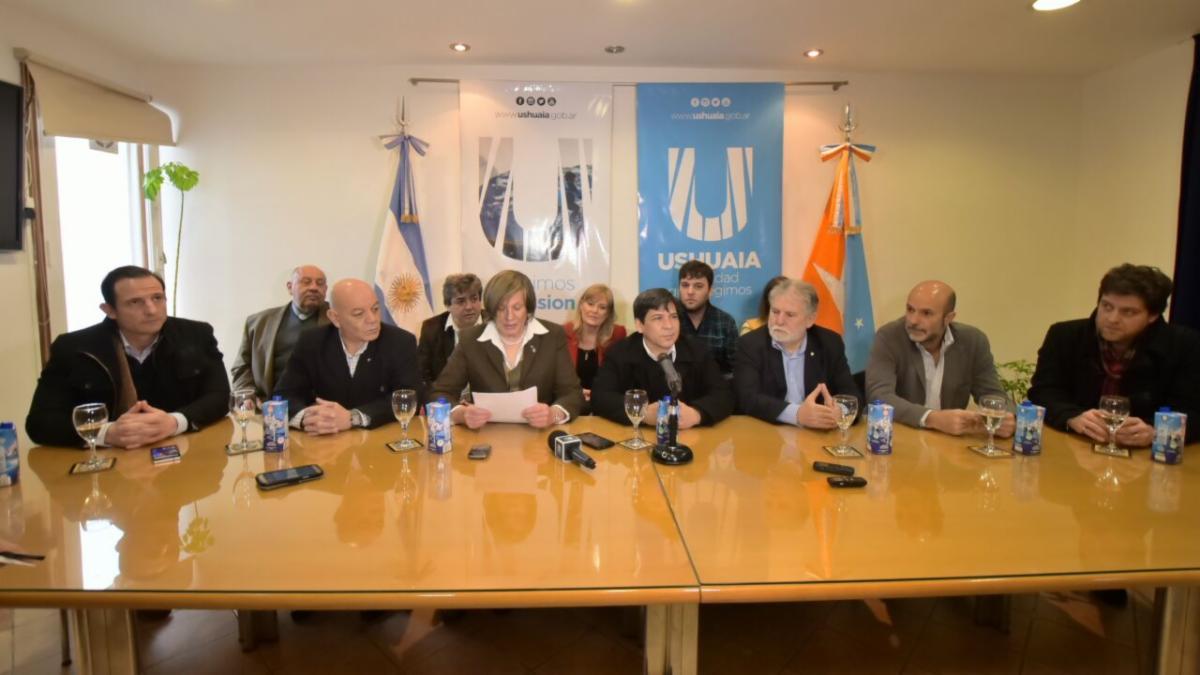 Participaron en la conferencia de prensa el secretario de Gobierno Oscar Souto; el subsecretario de Gobierno, Omar Becerra; la secretaria de Coordinación de Gestión, Teresa Méndez; la secretaria de Desarrollo Social, Malena Teszkiewicz; el secretario de Medio Ambiente, Damián de Marco; el rector de la Universidad Nacional de Tierra del Fuego, Juan Castellucci; y los concejales Gastón Ayala, Silvio Bocchicchio y Tomás Bertotto.