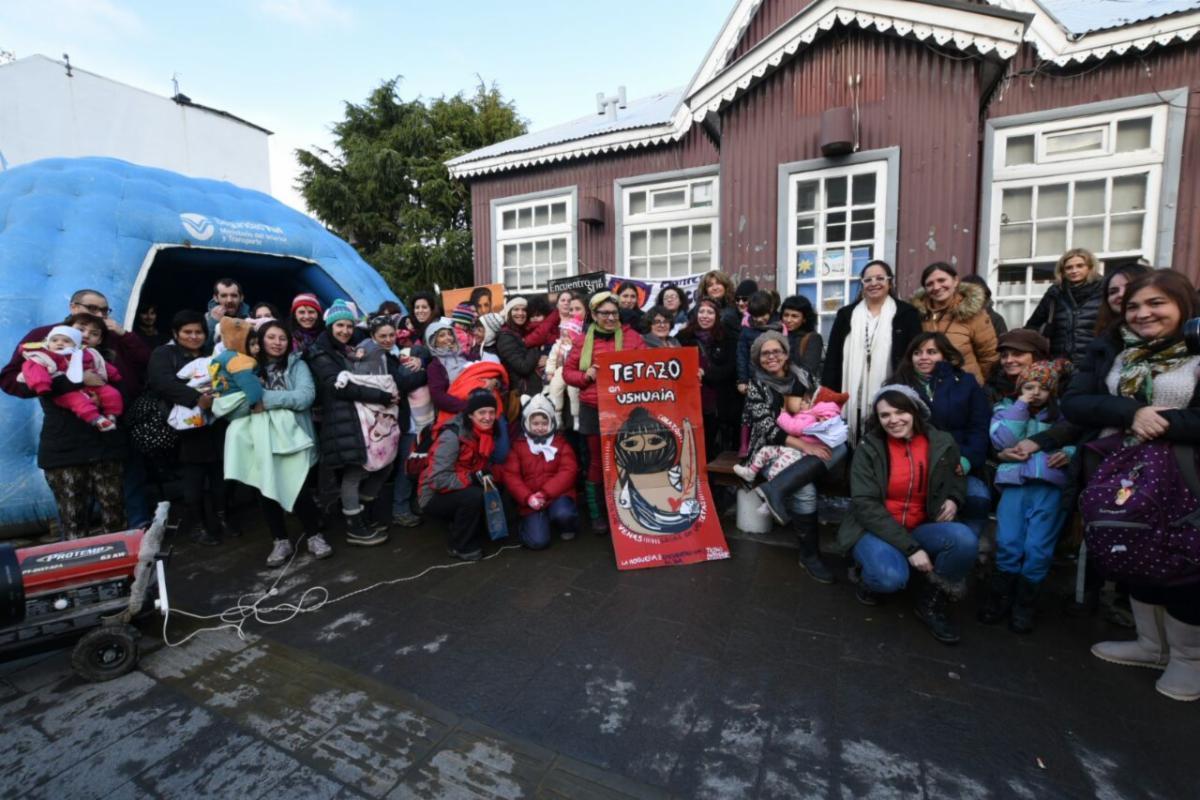 En la esquina de San Martín y Fadul, frente a la Secretaría, se realizó el encuentro donde se acompañó la actividad promovida por los colectivos para la efectiva realización de los derechos de la Mujer. Se montó una carpa calefaccionada para quien quiera amamantar en un lugar reparado de las bajas temperaturas reinantes en el invierno de Ushuaia, aunque la totalidad de las mujeres permanecieron en la vereda, alimentando a sus hijos.