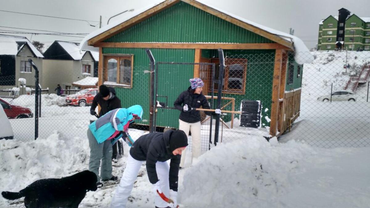 Una acción fundamental fue el trabajo de militantes y vecinos voluntarios de la ciudad que llevaron adelante la limpieza de escaleras y veredas de escuelas, bibliotecas, centros comunitarios de Ushuaia.