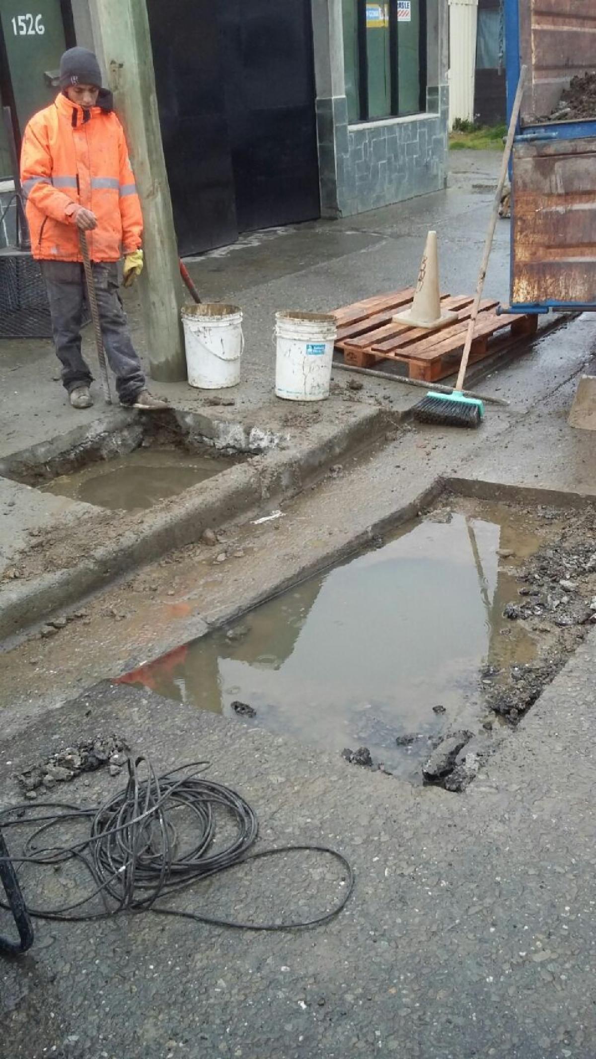 “Quitamos la escalera para hacer el trabajo que le solucione la vida cotidiana a los vecinos que venían teniendo el problema de agua en sus casas y esta solución de fondo implicó corregir un trabajo que estaba mal hecho y era antiguo”, dijo Hervias. “También tuvimos que arreglar esta otra situación de una cámara por debajo del cordón cuneta”.