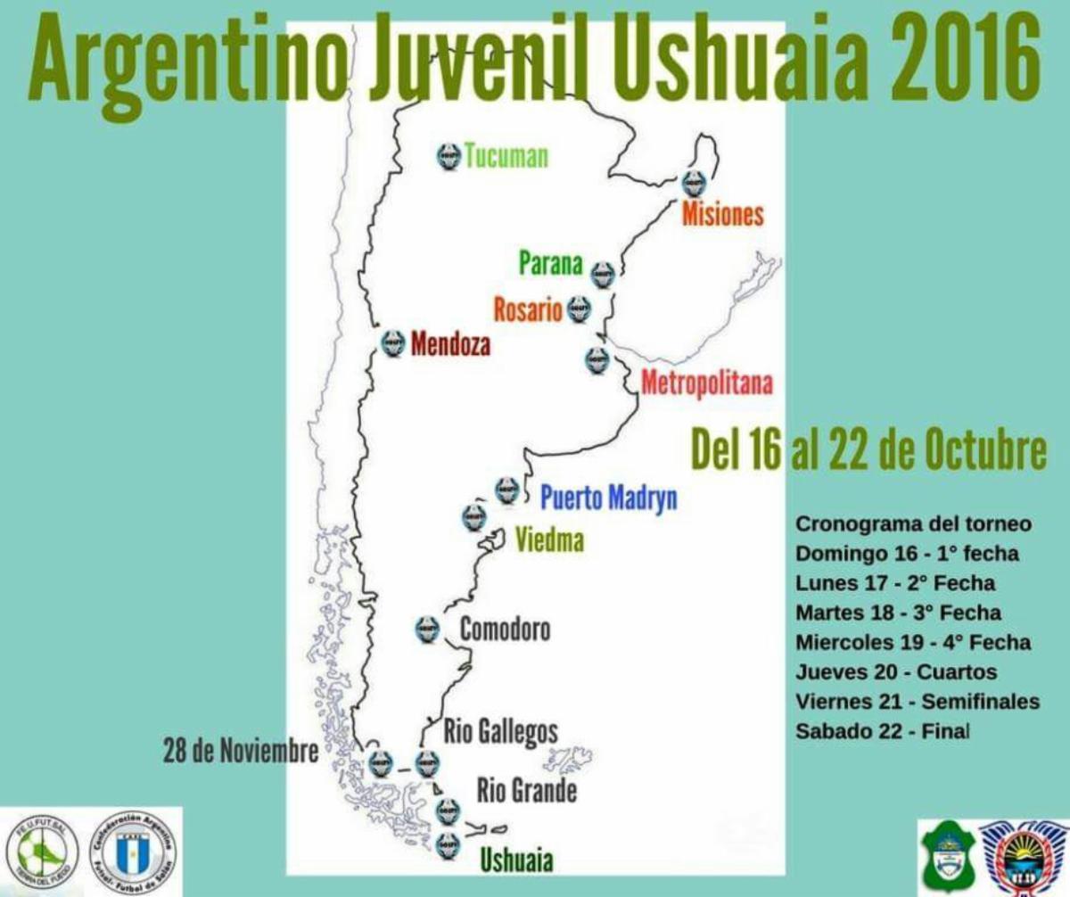 Entre el 16 y el 22 de Octubre en el Gimnasio Municipal Cochocho Vargas, se realizará el Torneo Argentino Juvenil 2016 con las selecciones de Ushuaia, Río Grande, Río Gallegos, 28 de Noviembre, Comodoro Rivadavia, Viedma, Puerto Madryn, Mendoza, Metropolitana, Rosario, Paraná, Tucumán y Misiones.