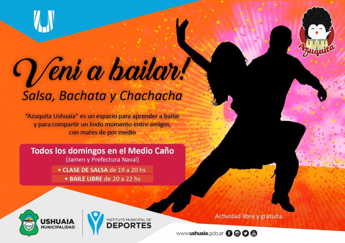 “Azuquita Ushuaia” es un espacio que propone clases gratuitas de salsa, bachata y chachachá para compartir un buen momento entre amigos, con mates de por medio.
