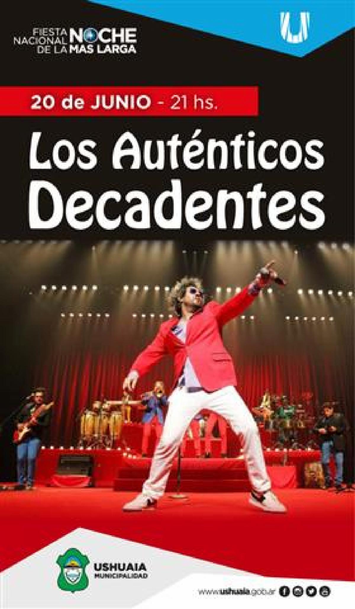 El show que coronará la Fiesta Nacional de la Noche más Larga será el lunes 20 a partir de las 21 horas en el Gimnasio AEP, con la presentación de la banda "Los Auténticos Decadentes". La entrada será gratuita y podrá ser retirada el sábado 18 de junio, a las 18 horas en la Antigua Casa Beban. Para garantizar que todos puedan tener su entrada, se entregará una por persona. Cabe señalar que la cantidad es limitada a la capacidad del gimnasio.