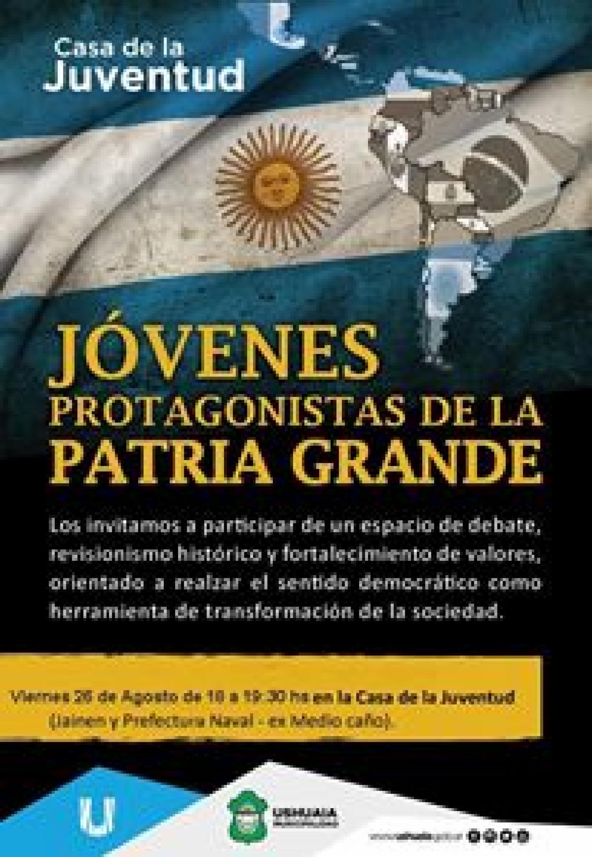 La actividad Jóvenes de la Patria Grande que comenzó a realizarse en el mes de mayo, quincenalmente, dentro del programa Casa de la Juventud, tendrá lugar este viernes.